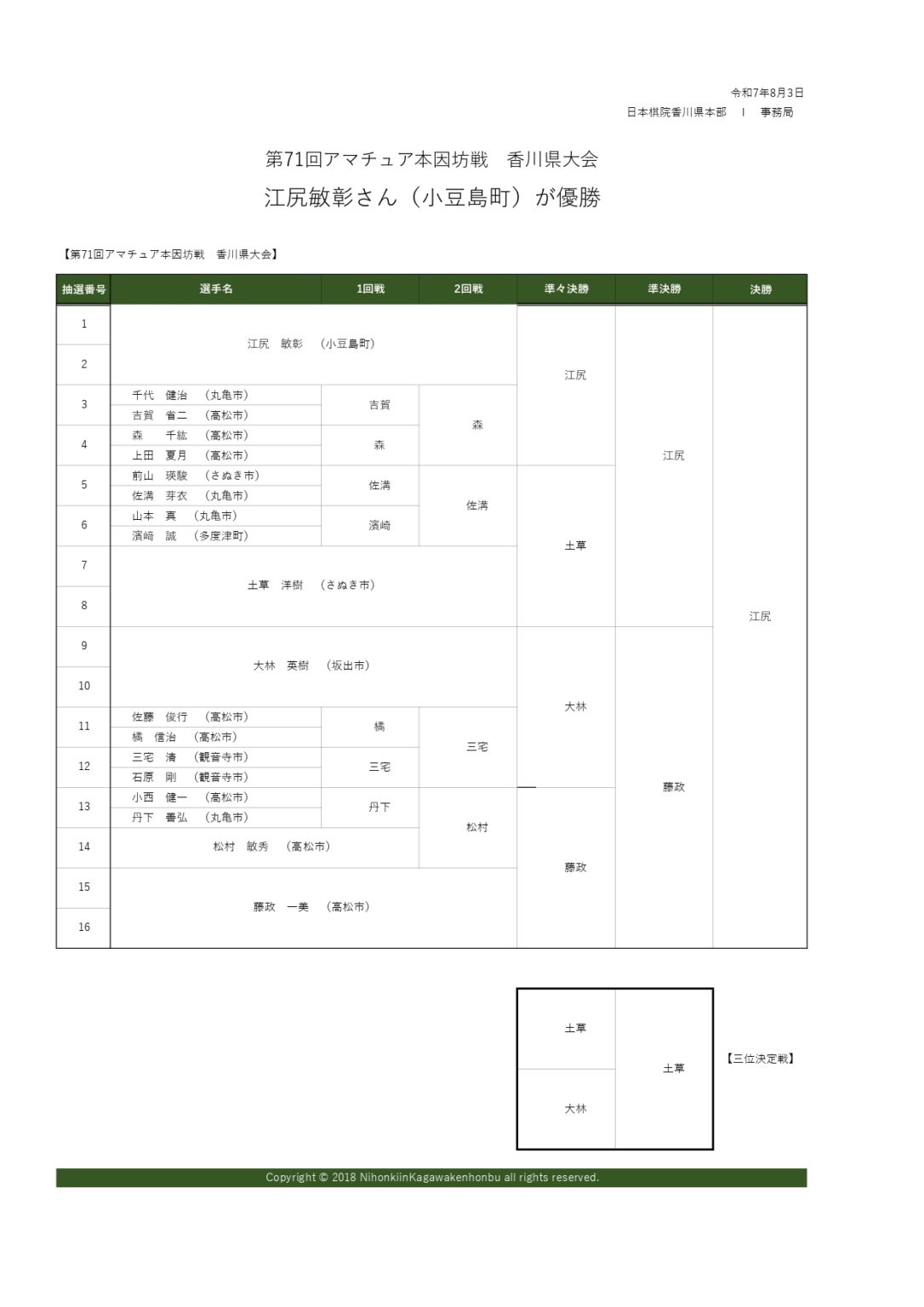 8月3日 第71回アマチュア本因坊戦香川県大会